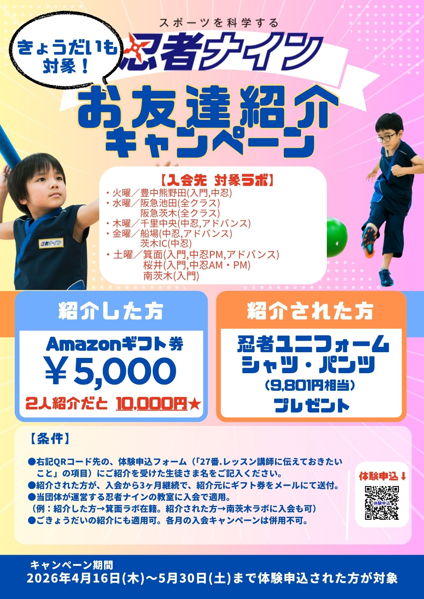 ご紹介で入会されたお友達には 忍者ユニフォーム(シャツ・パンツ)をプレゼント!
