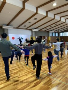 続いて、親子や兄弟、お友達同士でペアになってウォーミングアップを行いました。